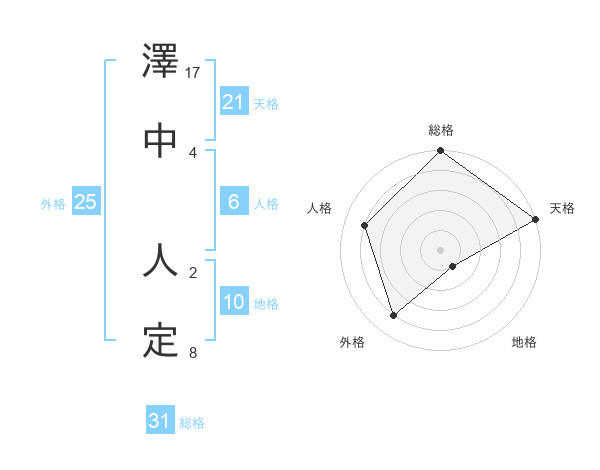 澤中 人定さんの天格は21画の5点!