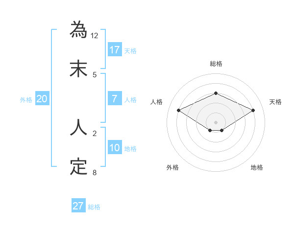 為末 人定さんの天格は17画の4点!