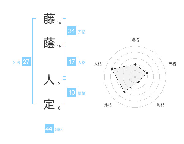 藤蔭 人定さんの総格は44画の2点!