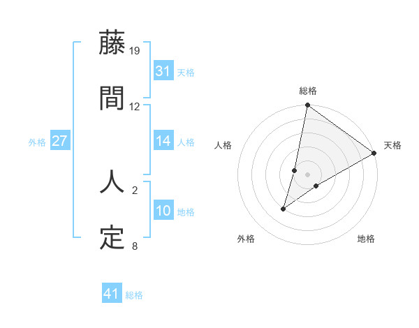 藤間 人定さんの天格は31画の5点!