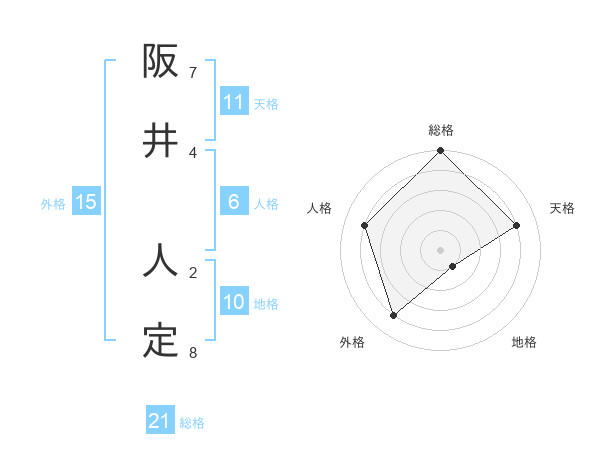 阪井 人定さんの総格は21画の5点!