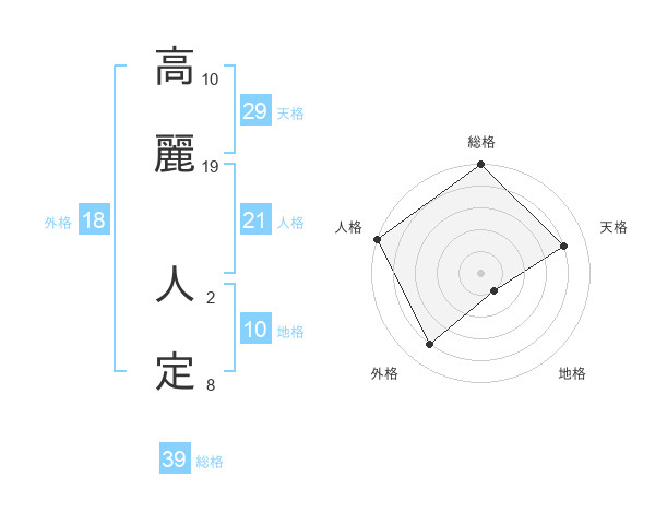 高麗 人定さんの総格は39画の5点!