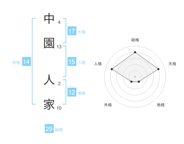 中園 人家さんの総格は29画の4点!