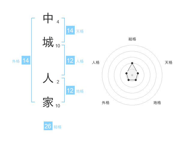 中城 人家さんの総格は26画の2点!