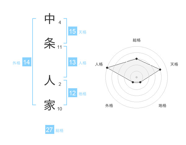 中条 人家さんの総格は27画の3点!