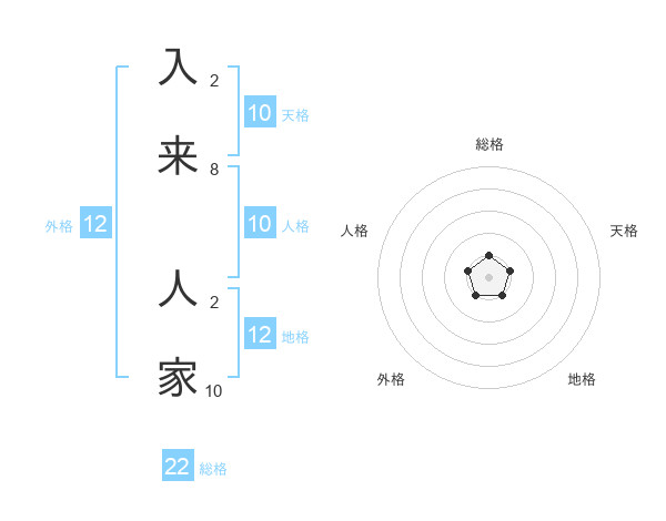 入来 人家さんの総格は22画の1点!