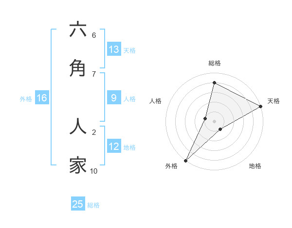 六角 人家さんの総格は25画の4点!
