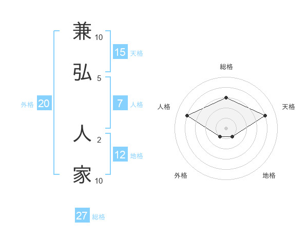 兼弘 人家さんを姓名の画数から五運を鑑定