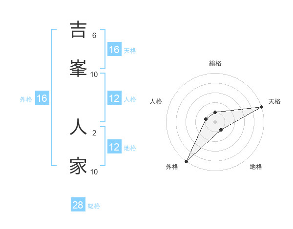 吉峯 人家さんの天格は16画の5点!