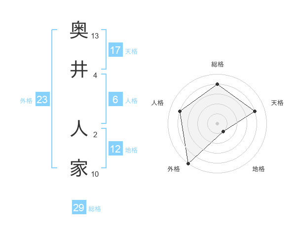 奥井 人家さんの外格は23画の5点!