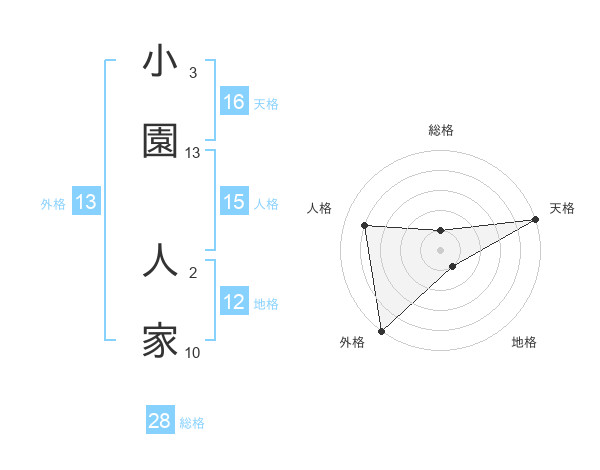 小園 人家さんの外格は13画の5点!