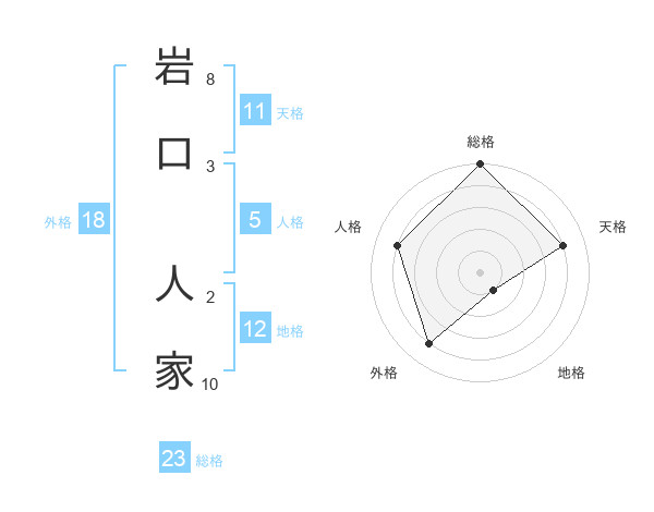 岩口 人家さんの総格は23画の5点!