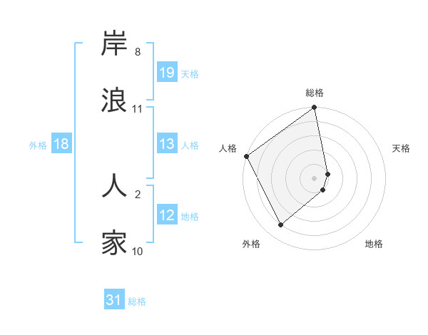 岸浪 人家さんを姓名の画数から五運を鑑定