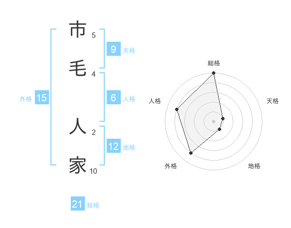 市毛 人家さんの総格は21画の5点!
