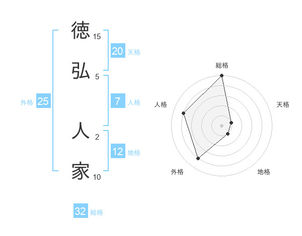 徳弘 人家さんを姓名の画数から五運を鑑定