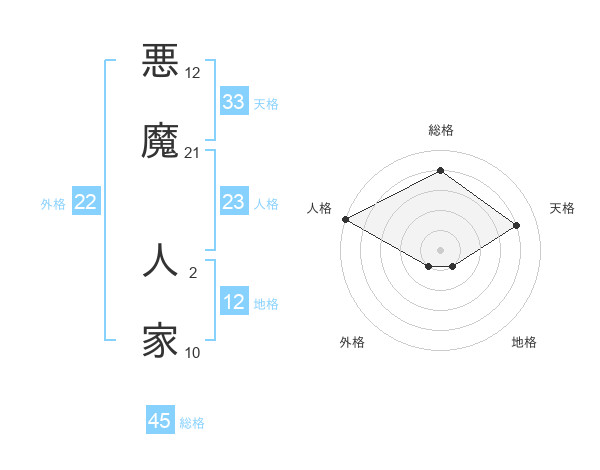 悪魔 人家さんの総格は45画の4点!