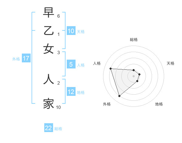 早乙女 人家さんを姓名の画数から五運を鑑定