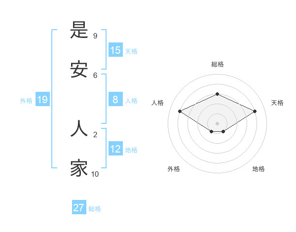 是安 人家さんの総格は27画の3点!