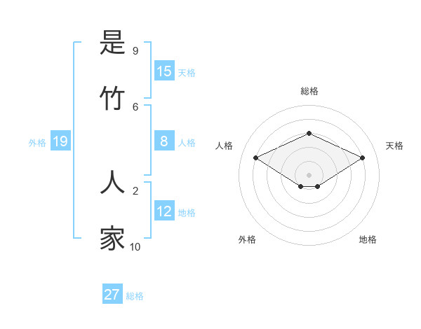 家系が持つ宿命的な運勢を表します。祖先から受け継いだ苗字ですので自分の力が及びません。家柄を象徴します。