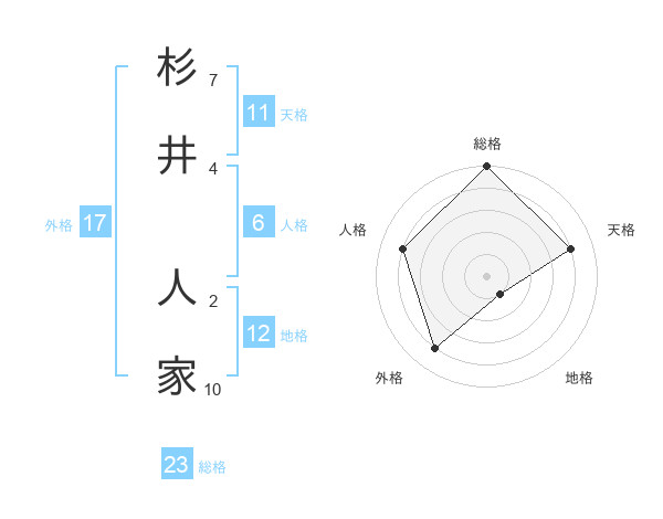 杉井 人家さんの総格は23画の5点!