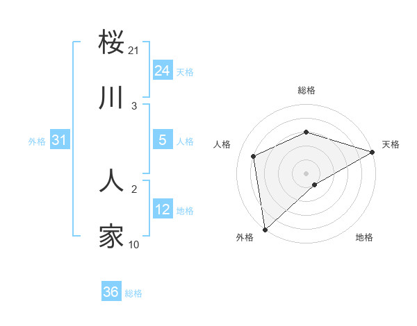 桜川 人家さんの外格は31画の5点!