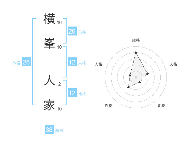 横峯 人家さんの総格は38画の4点!