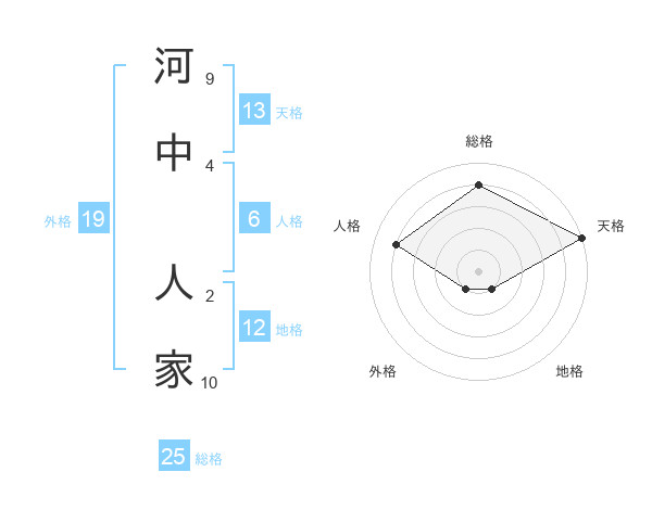 河中 人家さんの総格は25画の4点!