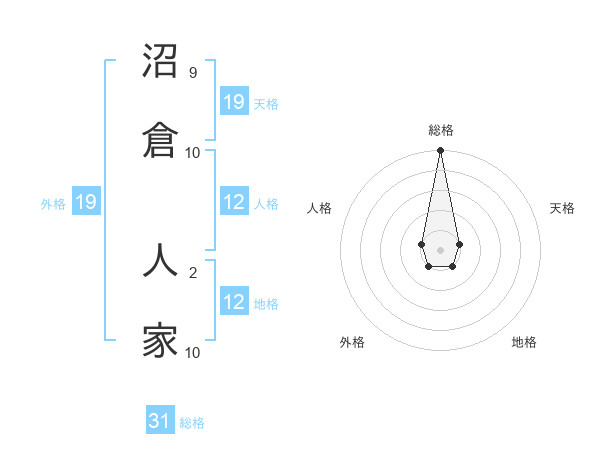 沼倉 人家さんの総格は31画の5点!