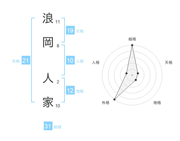 浪岡 人家さんの総格は31画の5点!