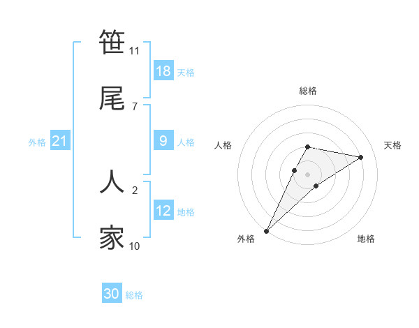 笹尾 人家さんを姓名の画数から五運を鑑定