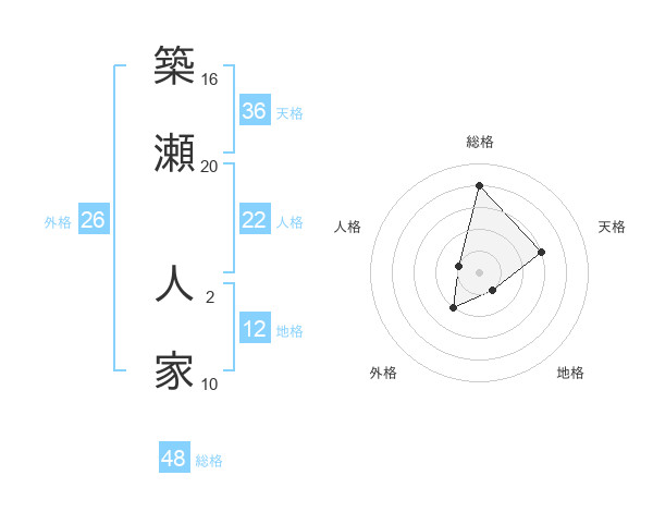 築瀬 人家さんを姓名の画数から五運を鑑定