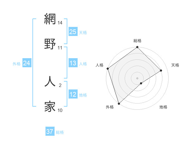 網野 人家さんの総格は37画の5点!