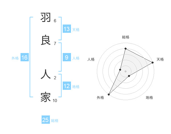 羽良 人家さんの総格は25画の4点!