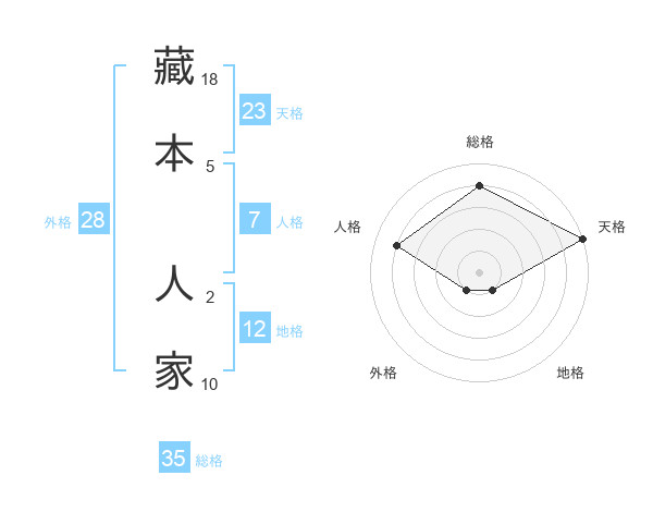 藏本 人家さんの総格は35画の4点!