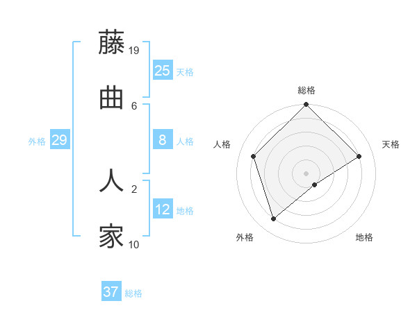 藤曲 人家さんを姓名の画数から五運を鑑定