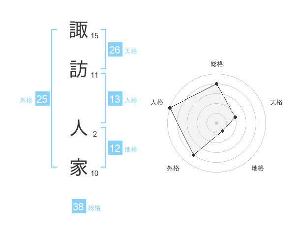 諏訪 人家さんを姓名の画数から五運を鑑定