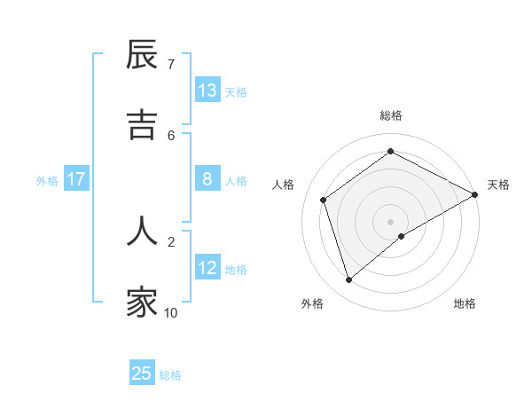 辰吉 人家さんの天格は13画の5点!