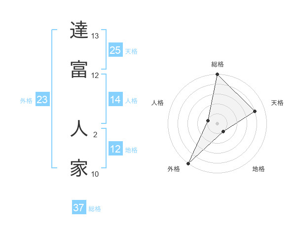 達富 人家さんの総格は37画の5点!