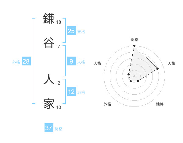 鎌谷 人家さんの総格は37画の5点!