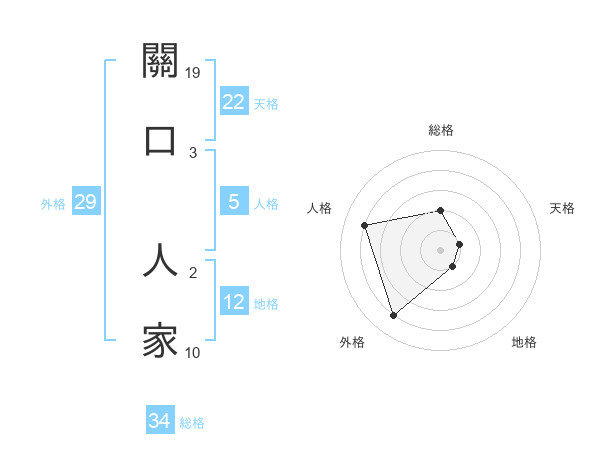 關口 人家さんの総格は34画の2点!