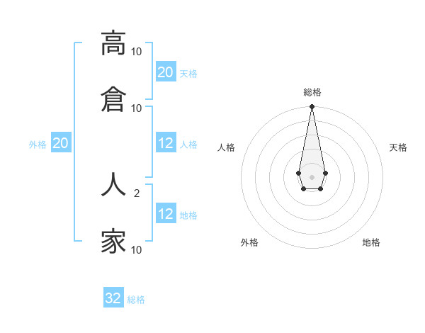 高倉 人家さんの総格は32画の5点!