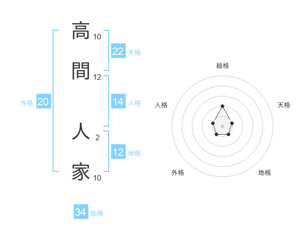 高間 人家さんの天格は22画の1点!