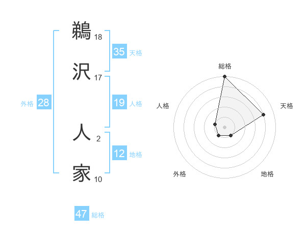 鵜沢 人家さんを姓名の画数から五運を鑑定