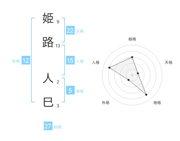 姫路 人巳さんの総格は27画の3点!