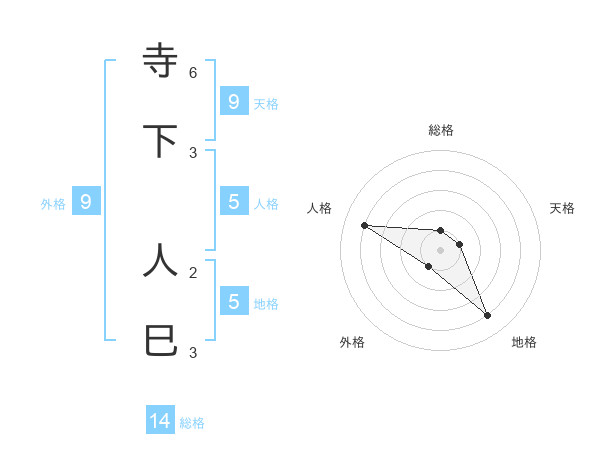 寺下 人巳さんを姓名の画数から五運を鑑定