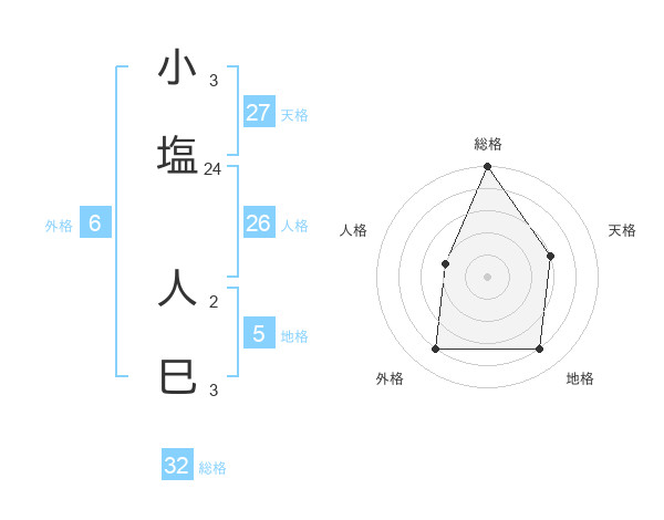 小塩 人巳さんを姓名の画数から五運を鑑定
