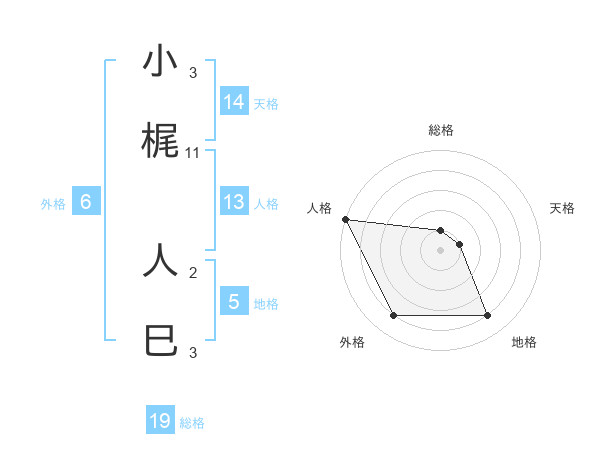 小梶 人巳さんを姓名の画数から五運を鑑定