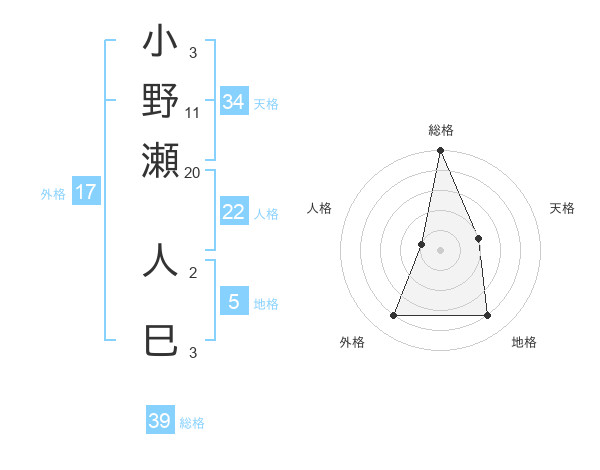 小野瀬 人巳さんを姓名の画数から五運を鑑定