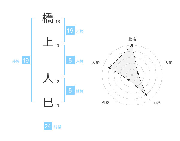 橋上 人巳さんを姓名の画数から五運を鑑定