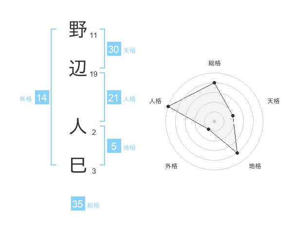 野辺 人巳さんを姓名の画数から五運を鑑定